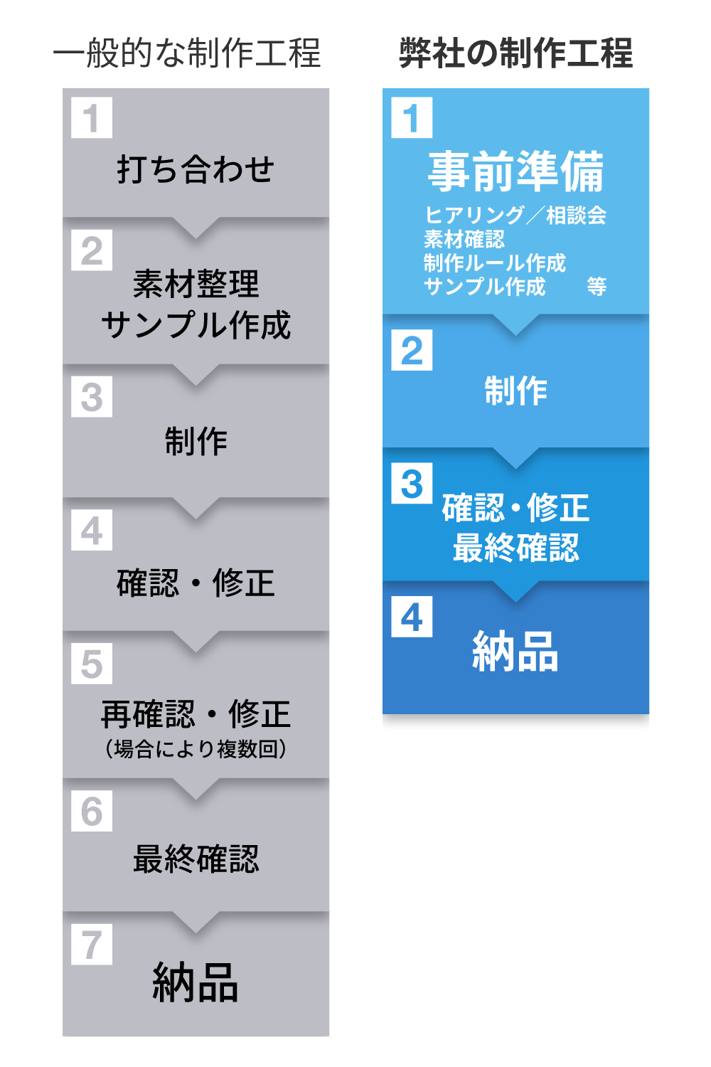 お客様の工数を減らし、仕上がりをご確認いただくだけの効率的な制作工程で、短納期を実現しています。
