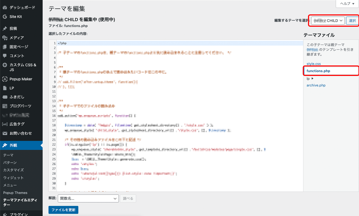 子テーマがない、作れないという場合は、プラグインを使ってfunctions.phpに書き込むこともできます。