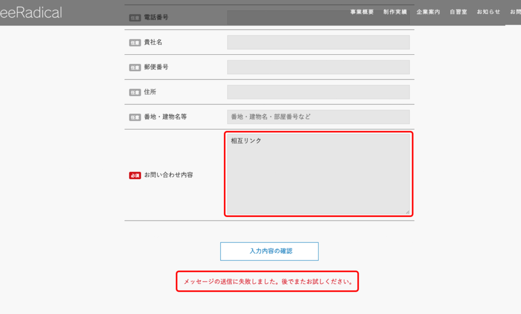 メールフォームでNGワードを入力してみて、エラーメッセージが出たら完成です。