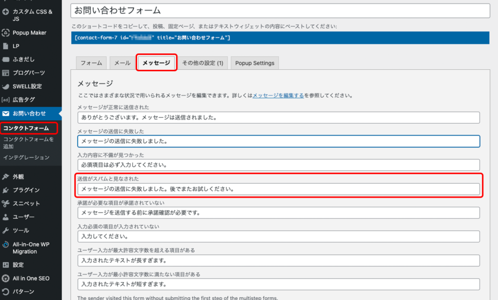 メールフォームの設定についてはWordPressに無料でメールフォームを設定しよう!をご覧ください。