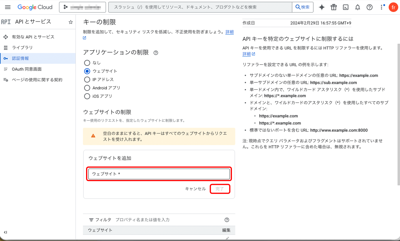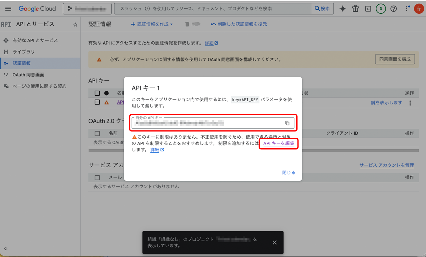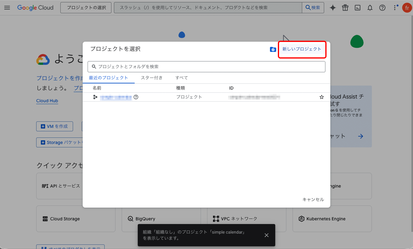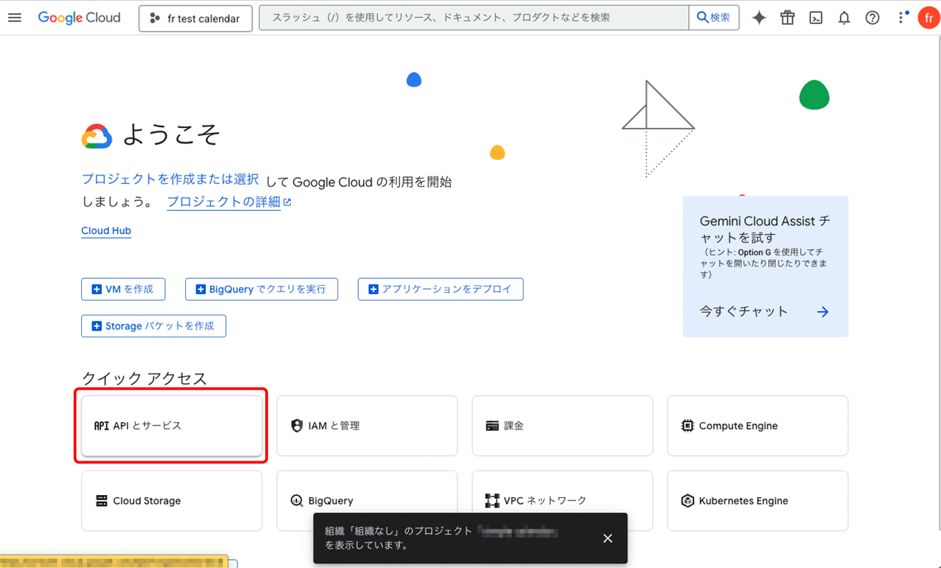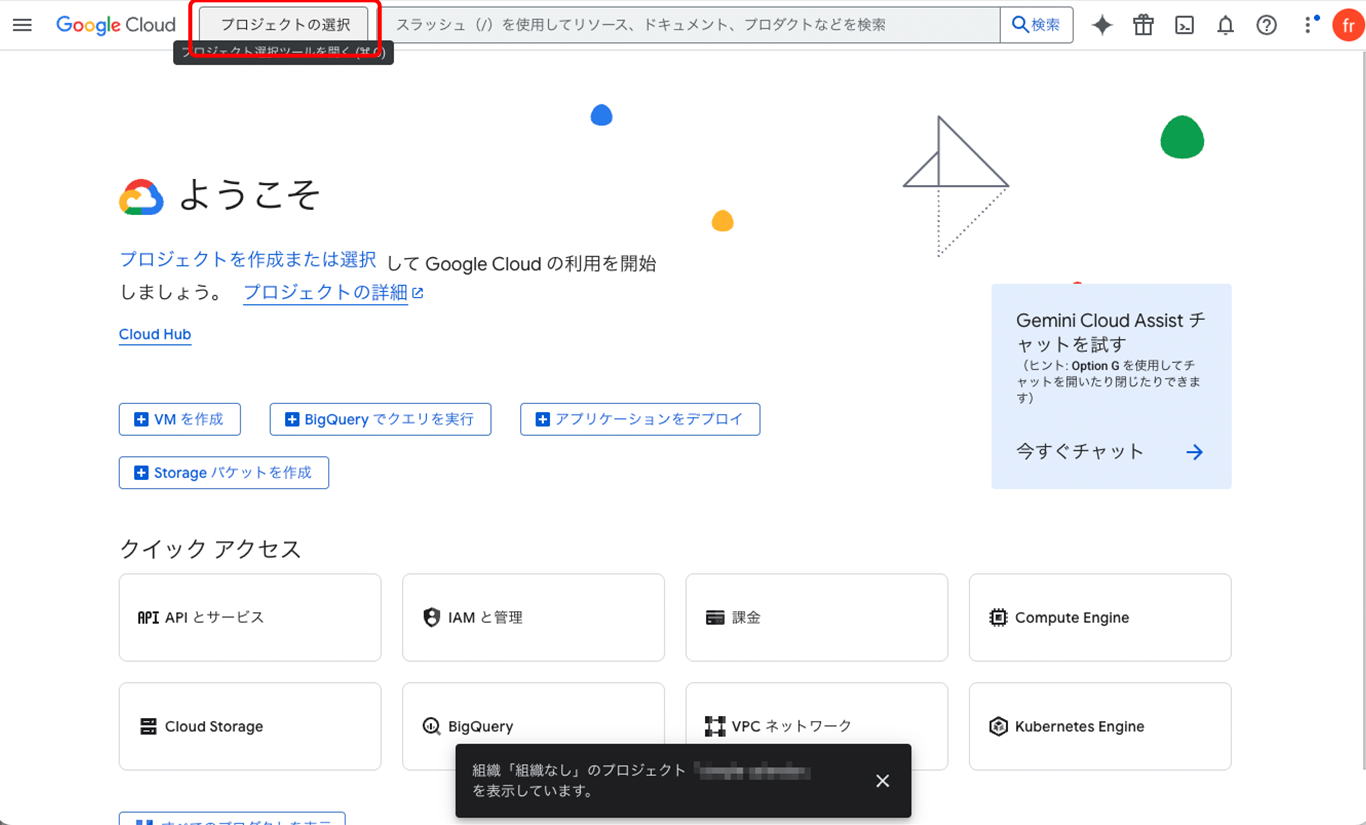Google Cloud Platform https://console.cloud.google.com/ にアクセスし、