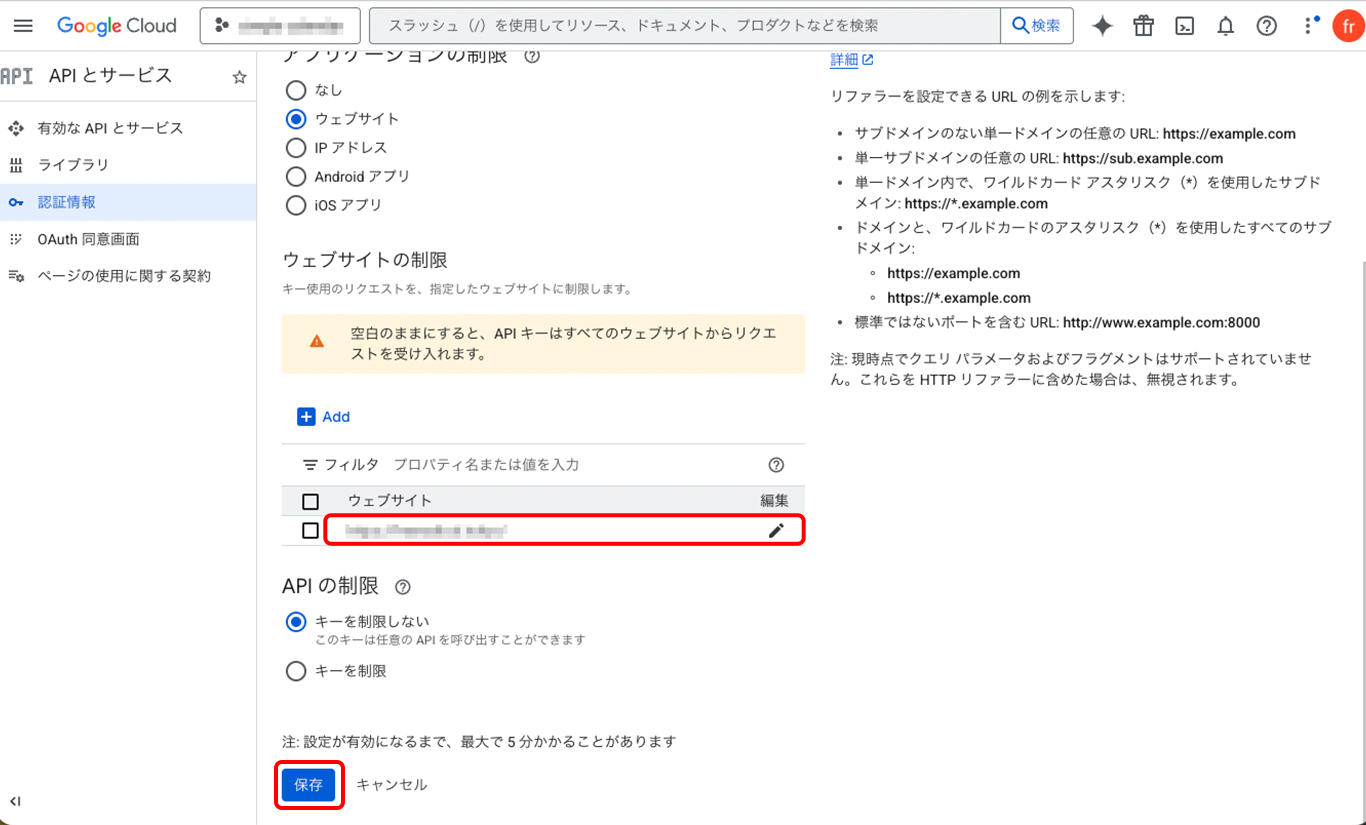 フィルタにウェブサイトが登録されたことを確認し、最下部の保存ボタンをクリックします。