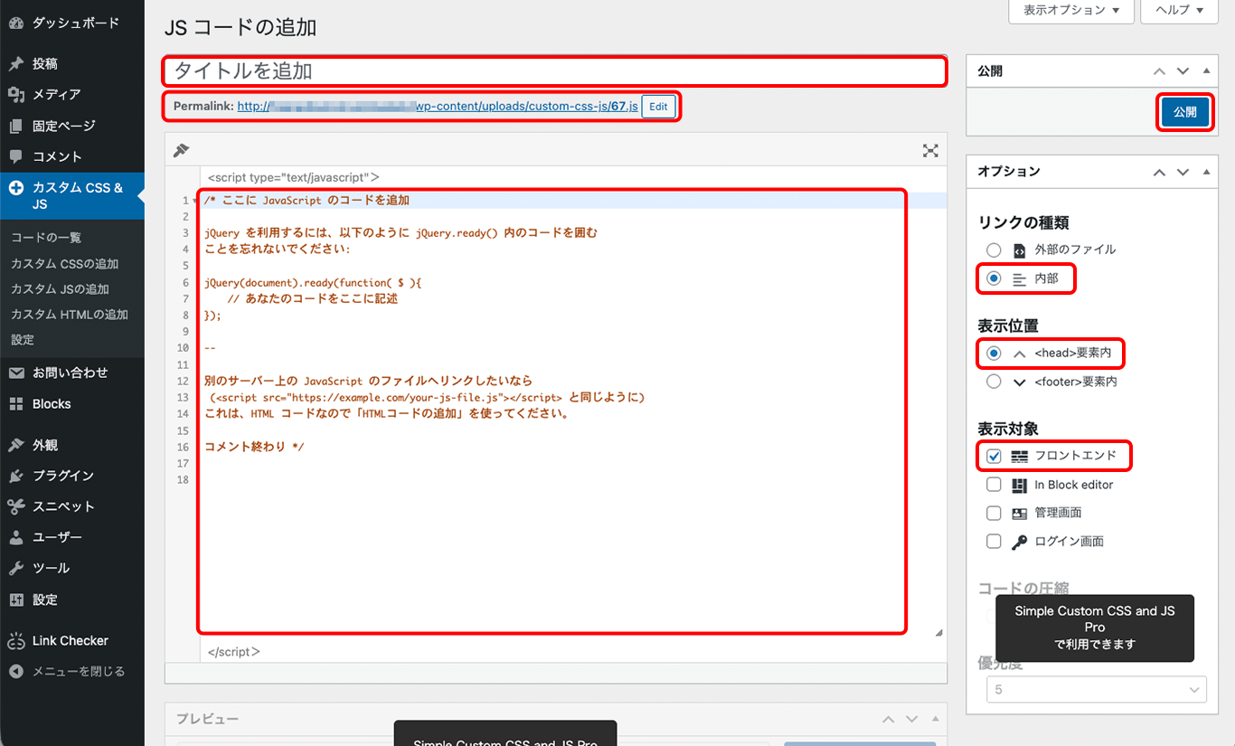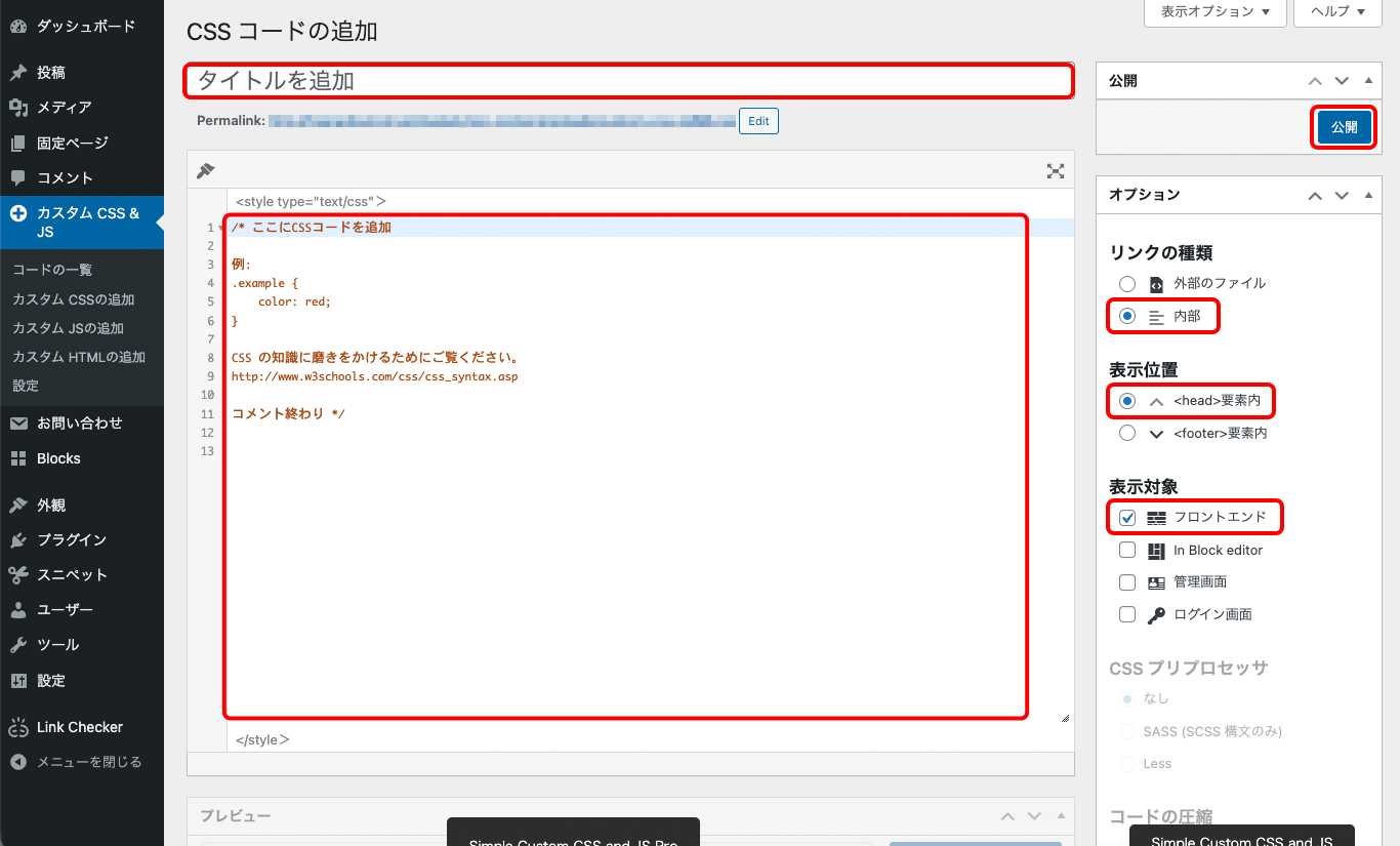 プラグイン『Simple Custom CSS and JS』についても解説します。